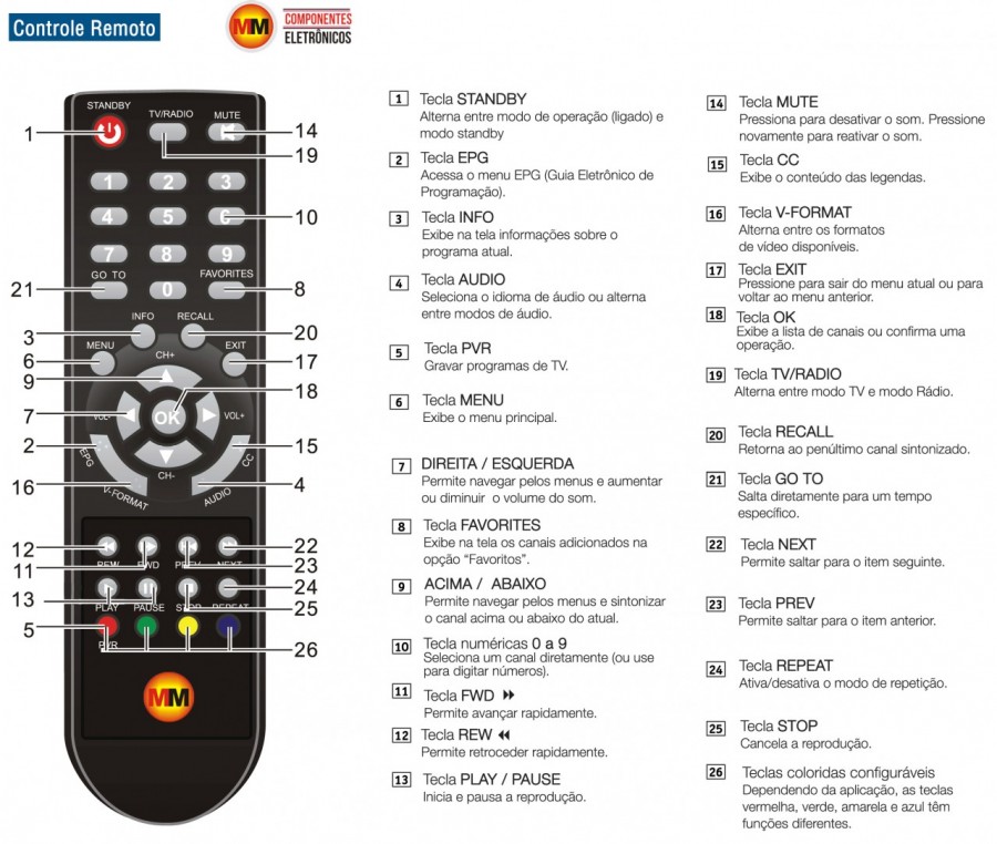 CONTROLE REMOTO CONVERSOR DIGITAL AQUÁRIO DVT8000