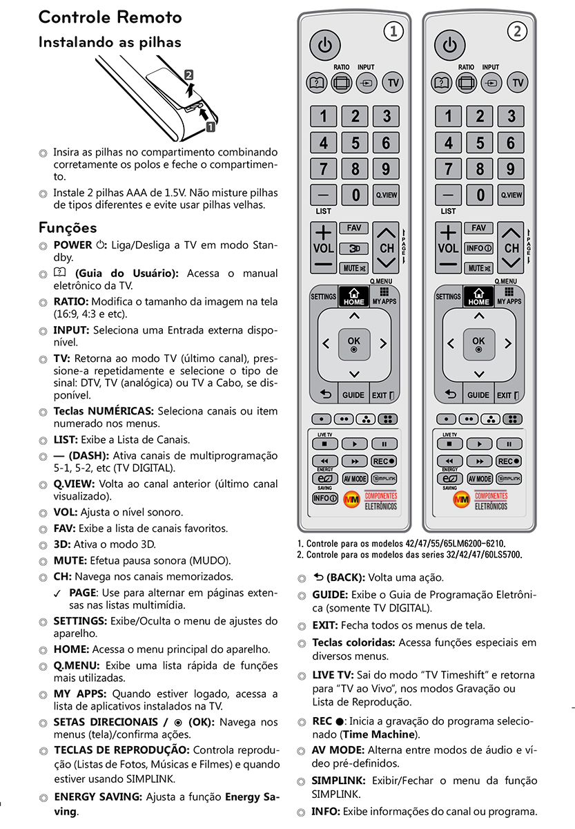 Modelos: AKB73615319 - 32LS5700 - 42LS5700 - 47LS5700 - 60LS5700 - 42LM6200 - 47LM6200 - 55LM6200 - 65LM6200 - 42LM6210 -47LM6210 - 55LM6210 - 65LM6210