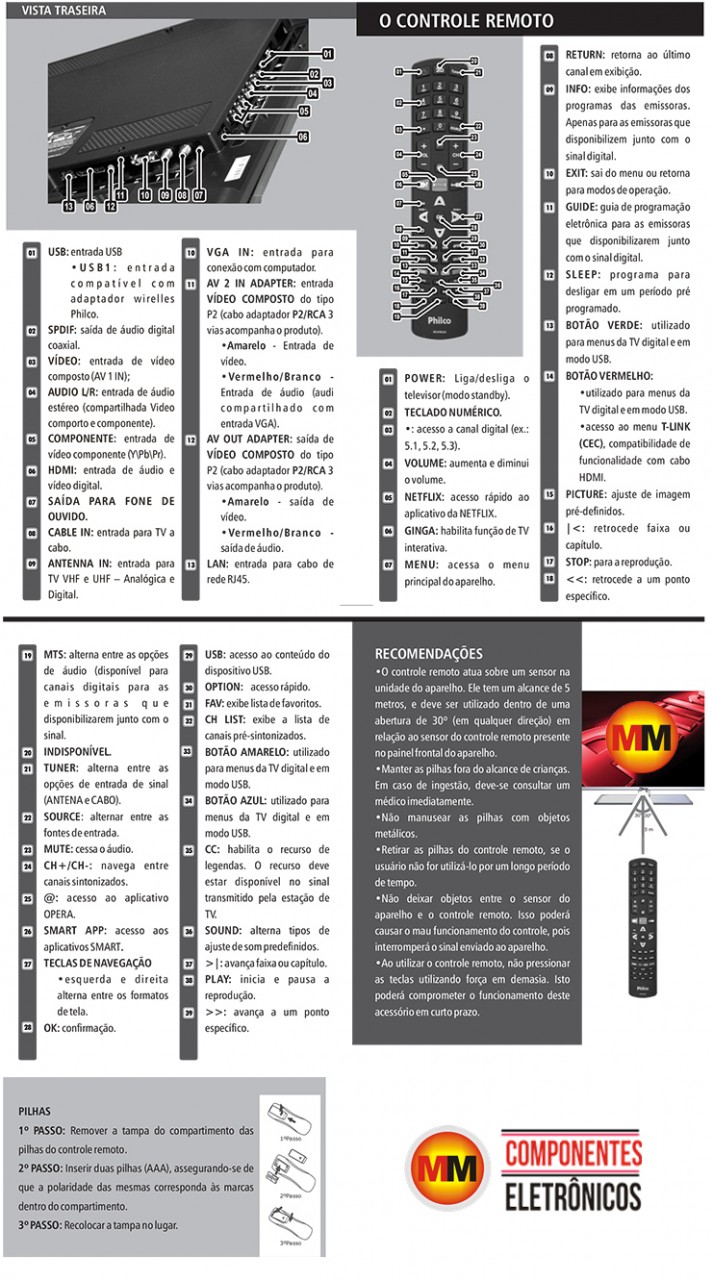 Modelo: RC 3100L03 - TV PH32E53SG | TV PH39E53SG | TV PH42E53SG | TV PH46E53SG | TV PH39F33DSG | TV PH58E30DSG | TV PH55M LED SMART 3D B | TV PH46M LED SMART 3D A | TV PH55M LED SMART 3D A | TV PH43M LED SMART 3D A