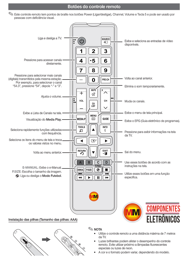 Manual da Tv: Clicando no modelo em negrito, você será direcionado para o Manual do equipamento.